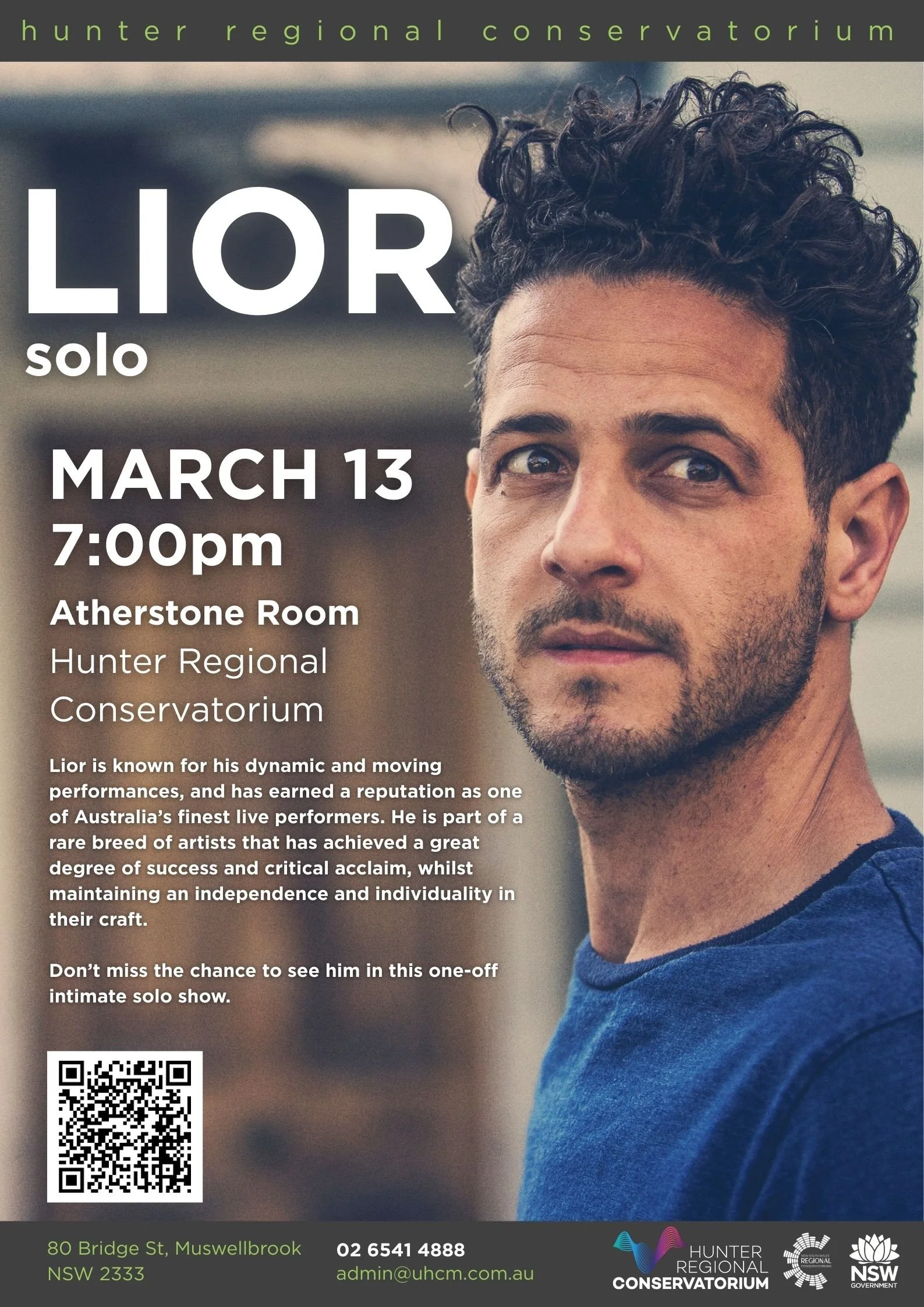 Lior is known for his dynamic and moving performances, and has earned a reputation as one of Australia’s finest live performers. He is part of a rare breed of artists that has achieved a great degree of success and critical acclaim, whilst maintaining an independence and individuality in their craft.